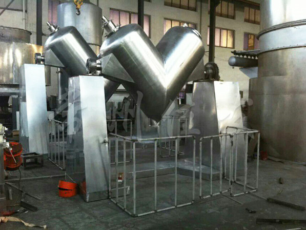 該機(jī)通過機(jī)械傳動(dòng),使不對(duì)稱的V型圓柱體內(nèi)的物料做往復(fù)翻動(dòng),達(dá)到均勻混合之目的。